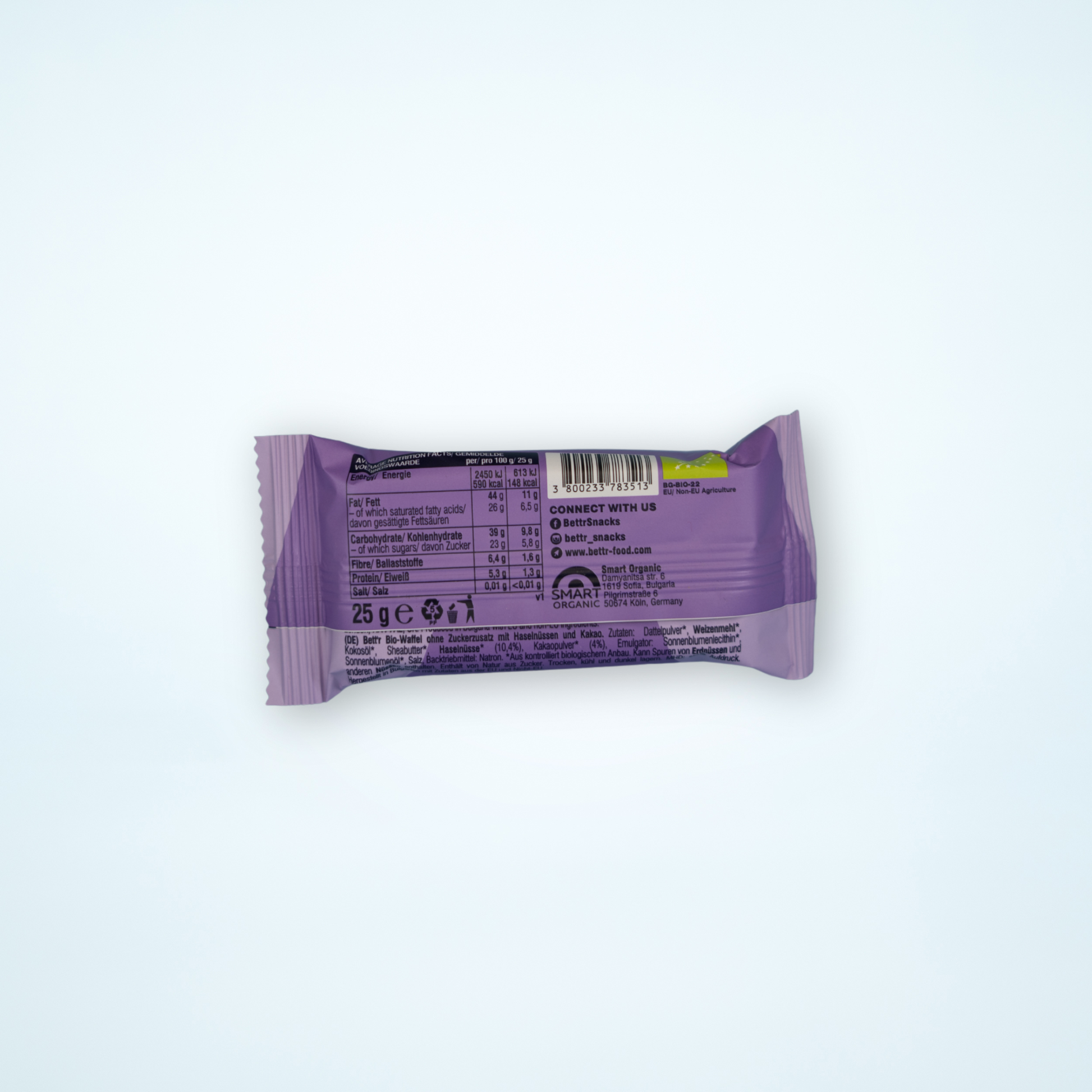 Perfekt gebackene, knusprige Waffelküsse mit zarter Haselnuss-Kakao-Creme – das volle Genuss-Potenzial ohne Zuckerzusatz. Gesüßt wird ausschließlich mit Erythrit und Xylit, was keine schnellen Blutzuckerspitzen verursacht. bio, vegan, clean.