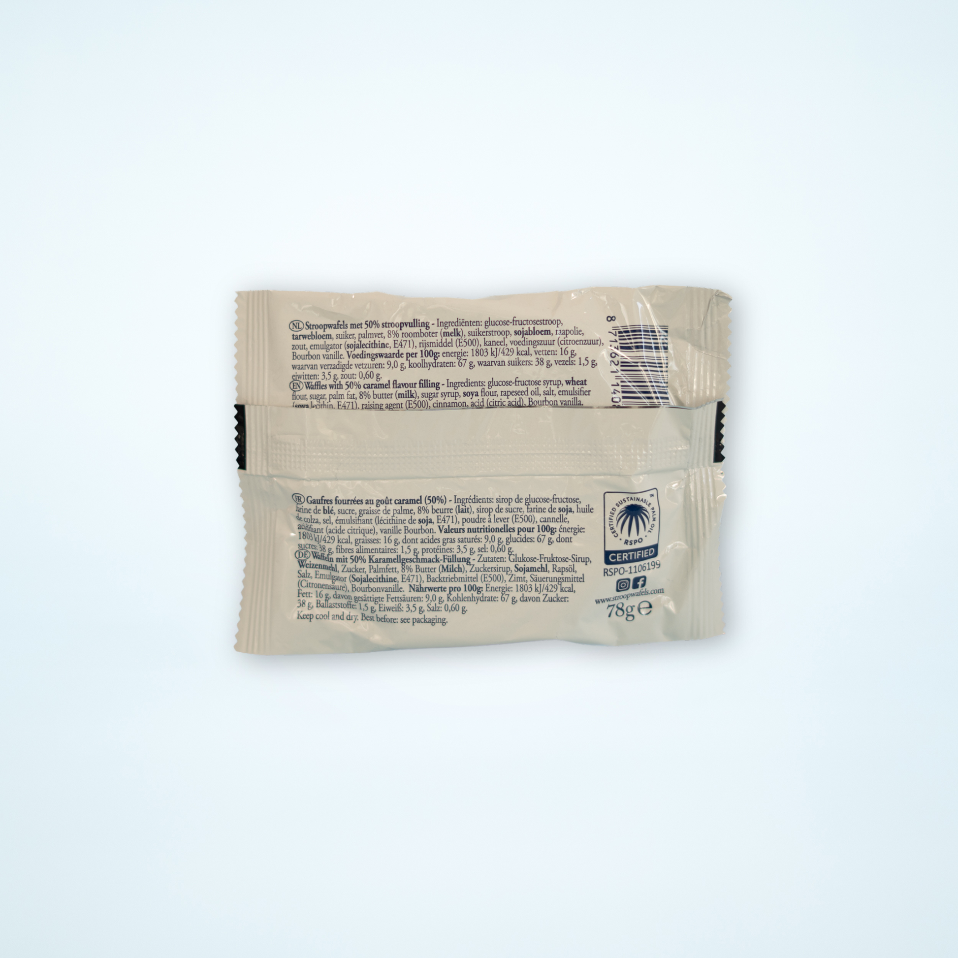 Zutaten und Allergene: Glukose-Fruktose-Sirup, Weizenmehl, Zucker, Palmfett, 8% Butter (Milch), Zuckersirup, Sojamehl, Rapsöl, Salz, Emulgator (Sojalecithine, E471), Backtriebmittel (E500), Zimt, Säuerungsmittel (Citronensäure), Bourbonvanille.