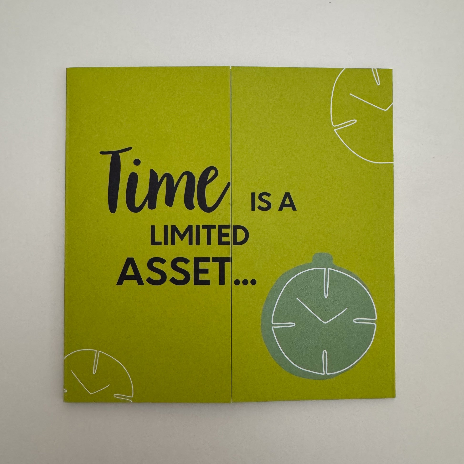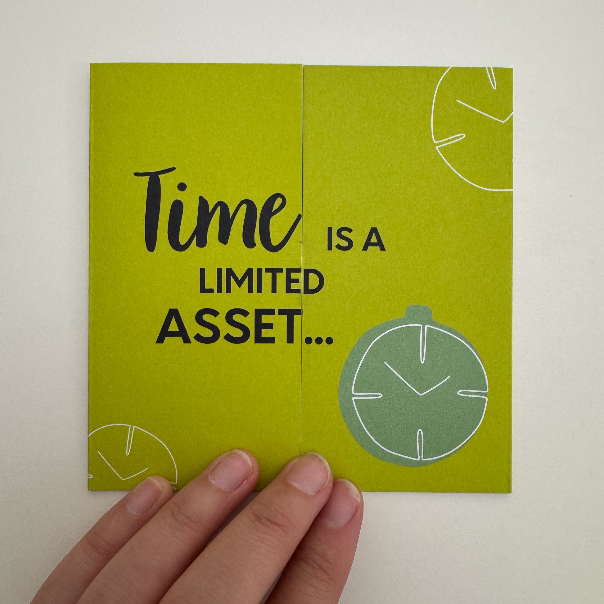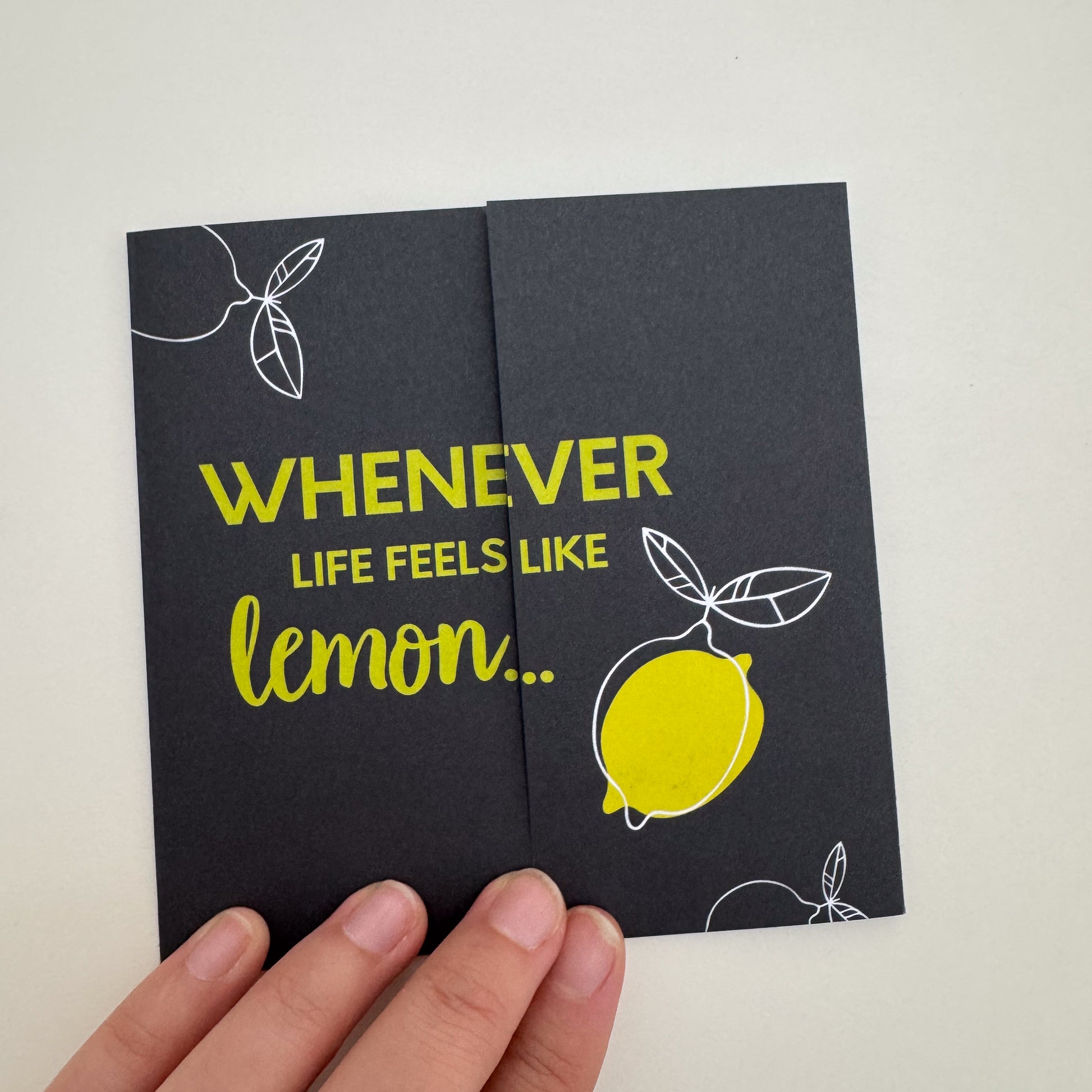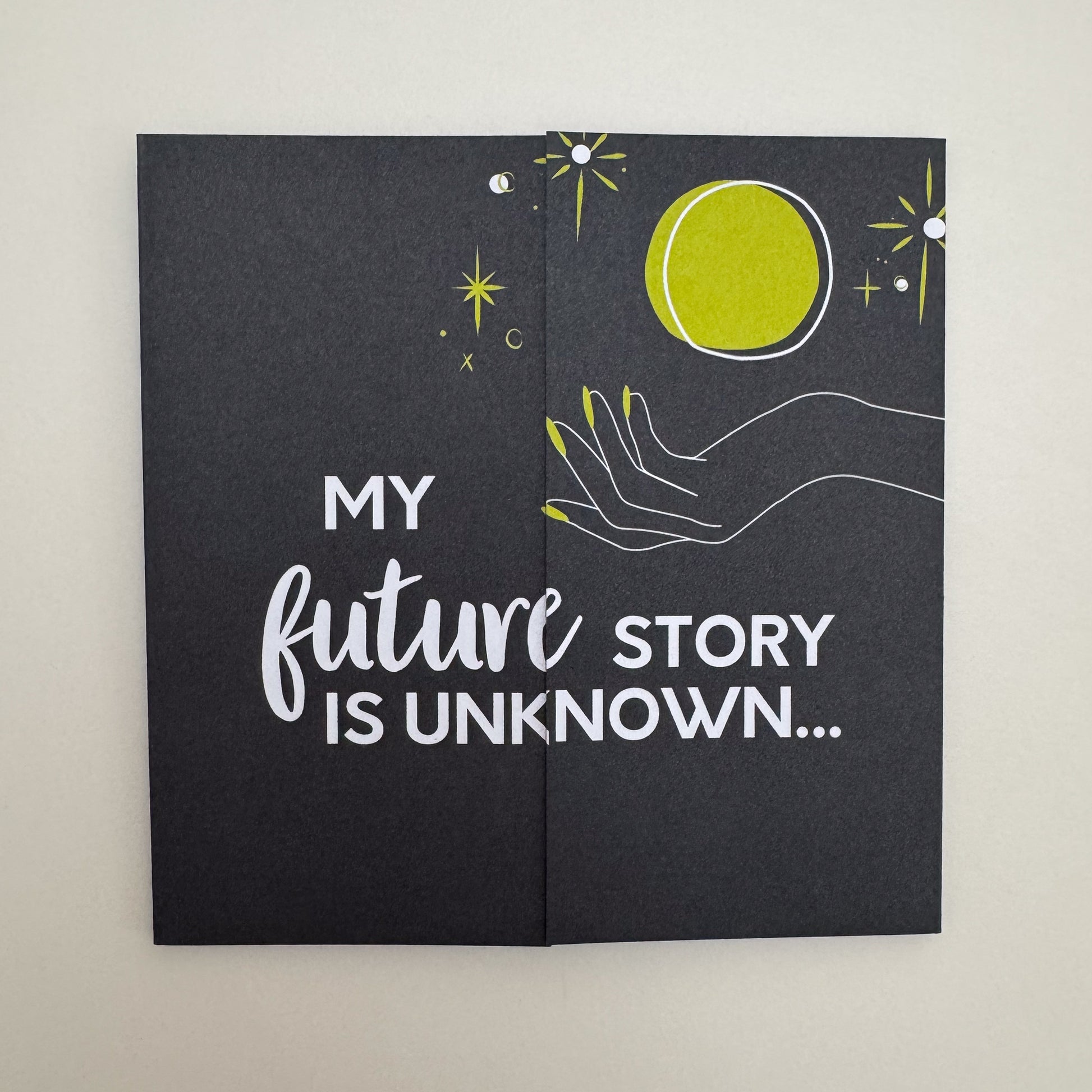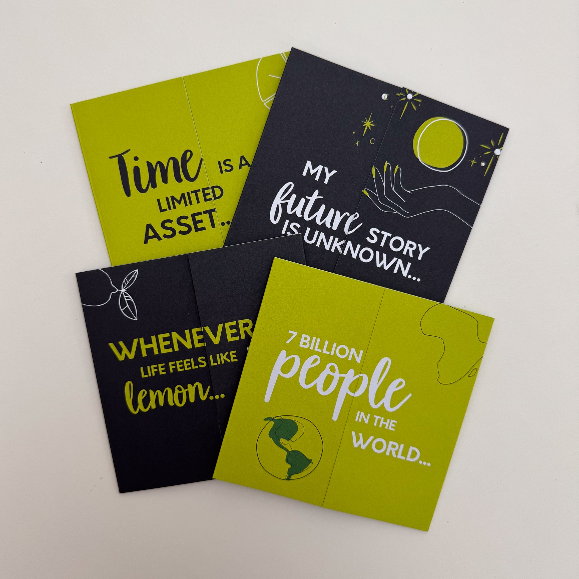 Klappe die Kartenflügeln um 360 Grad, um den 2. Teil des Spruchs zu lesen. Schau links im Video nach.