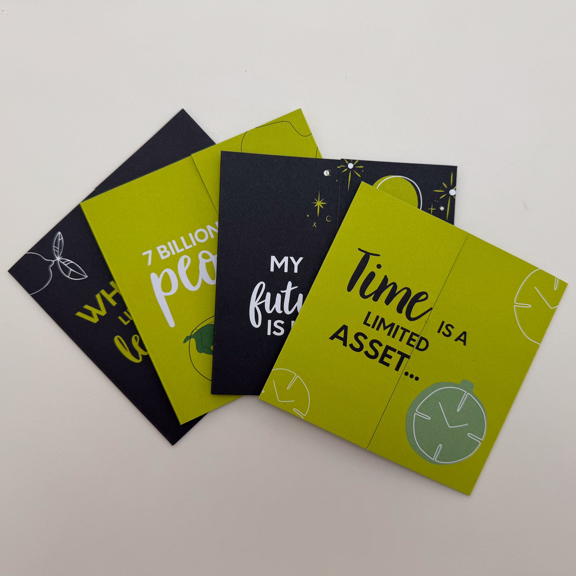 Die myBuddy Karten kommen in 4 Variationen, erhältlich als reine und gemischte Sets.