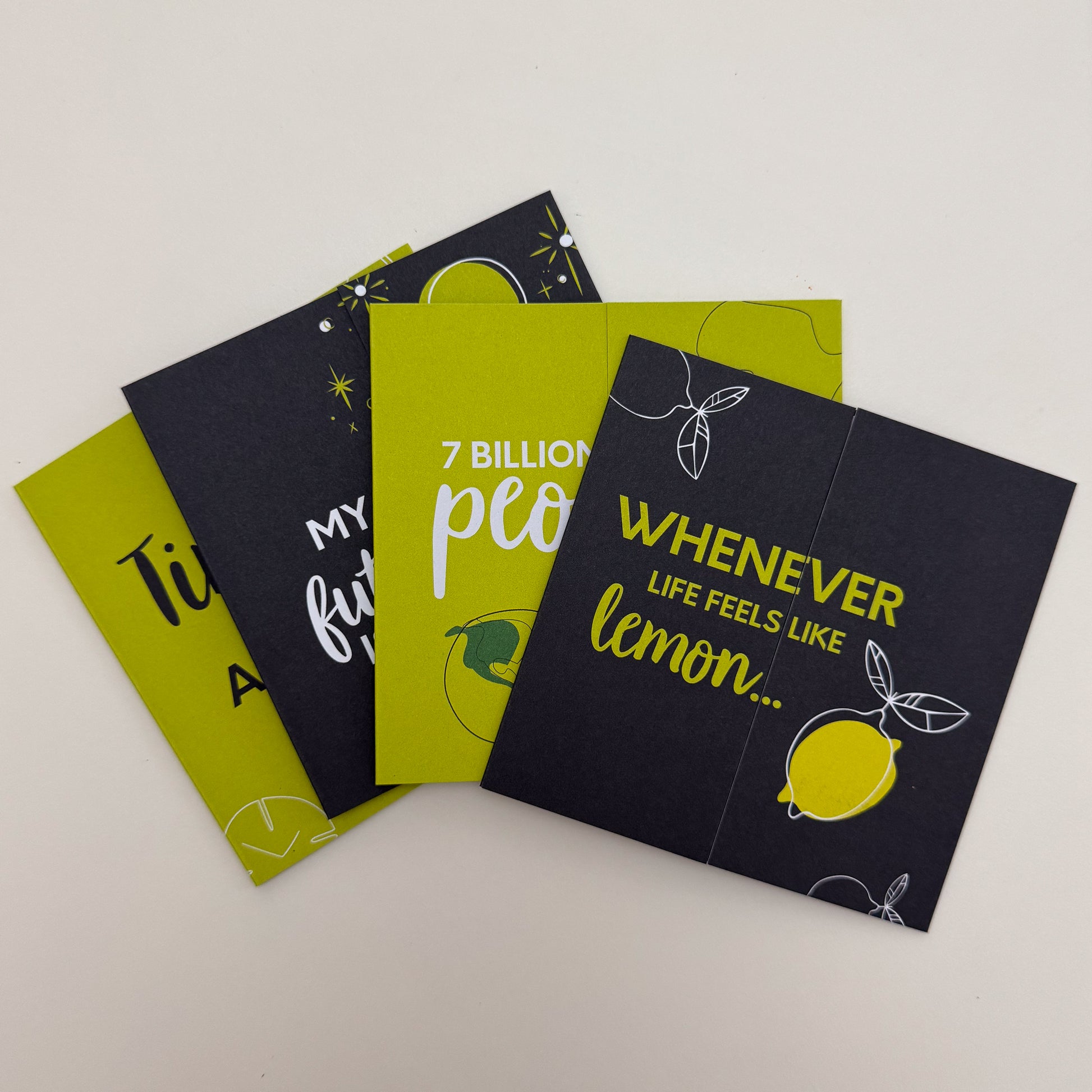 Mit 4 Sprüchen und dem besonderen Flip-Effekt sorgen diese Karten garantiert für ein Schmunzeln und bleiben im Gedächtnis.