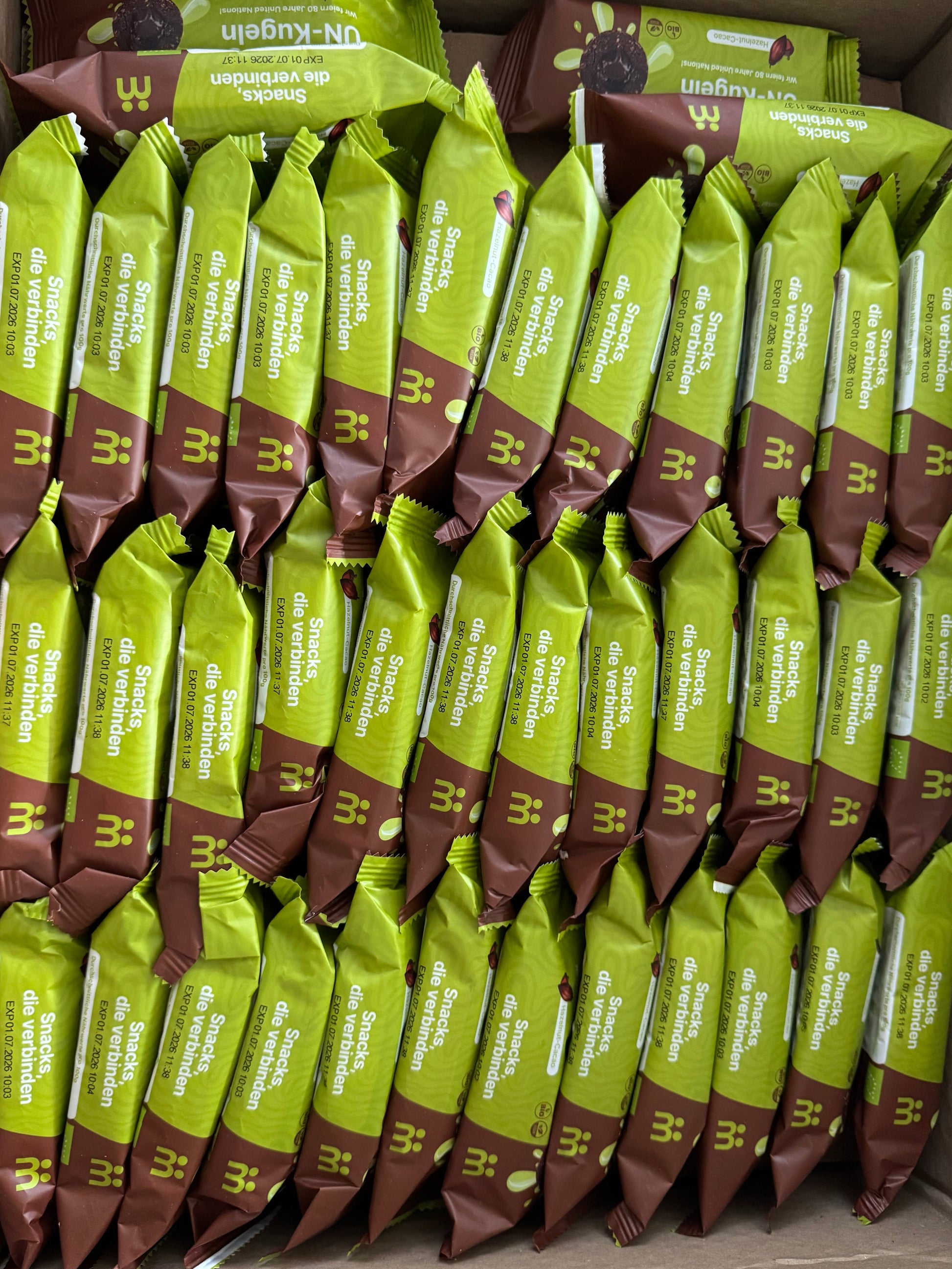 Zutaten und Allergene: Datteln* (58%), geröstete Haselnüsse* (20%), Kakaopulver* (7%), Kakaobutter* (4%), Kokosöl*, Dattelpulver*, Süßungsmittel: Erythrit*, Kokosmehl*, Emulgator: Sonnenblumenlecithin*.